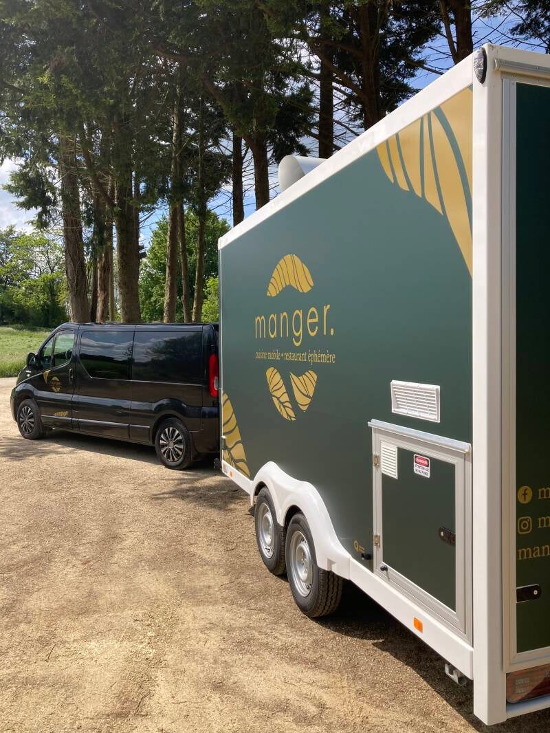 La cuisine est installée dans une magnifique remorque d’environ 5 mètres de long et permet de s’adapter à une grande diversité d’espaces et de configurations. Il est tout à fait possible de cuisiner pour des repas assis en toute autonomie car la remorque peut fonctionner avec gaz et groupe électrogène au besoin. On peut également proposer des repas ou cocktail debout avec bouchées ou plutôt en mode foodtruck (les clients viennent commander directement au camion).